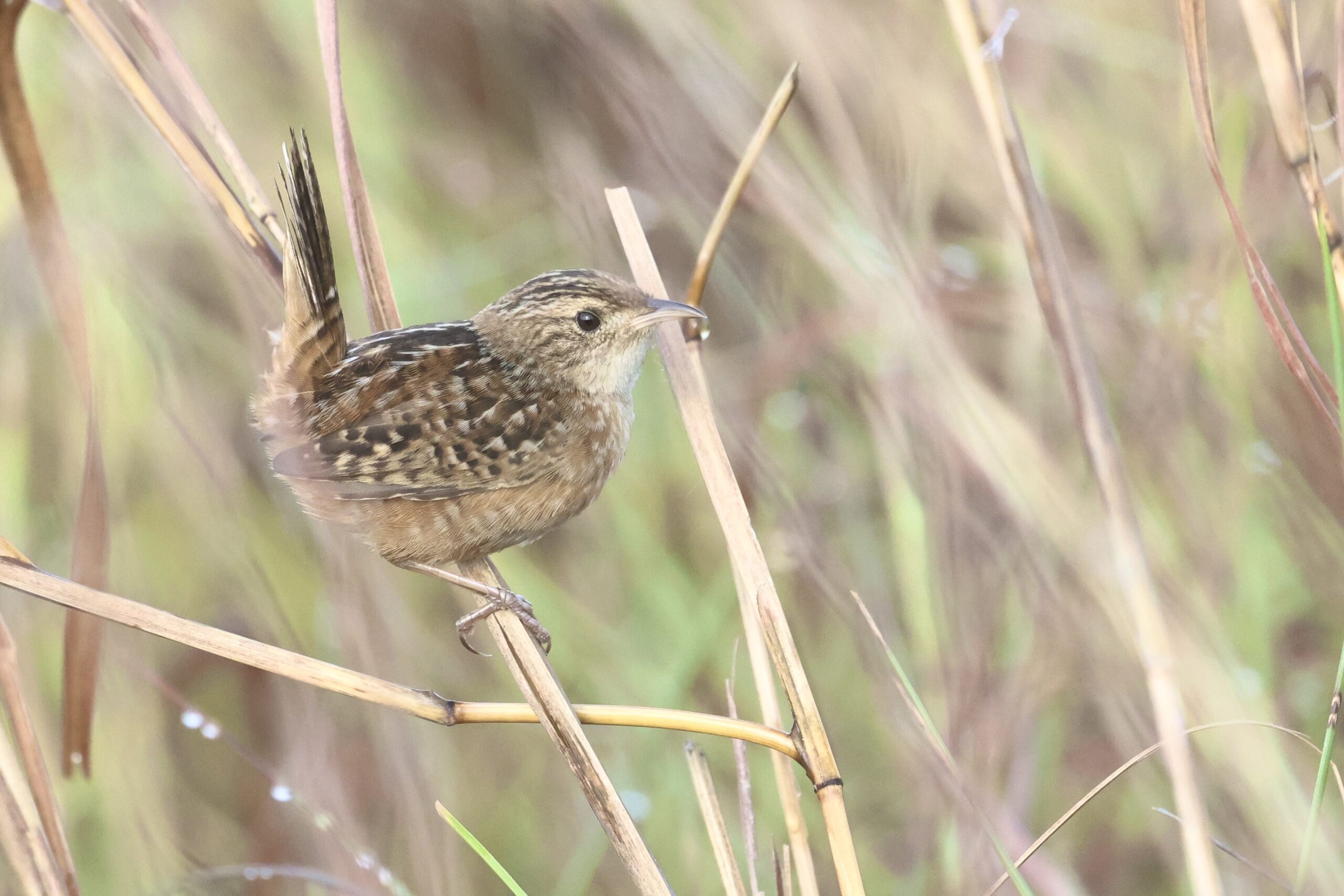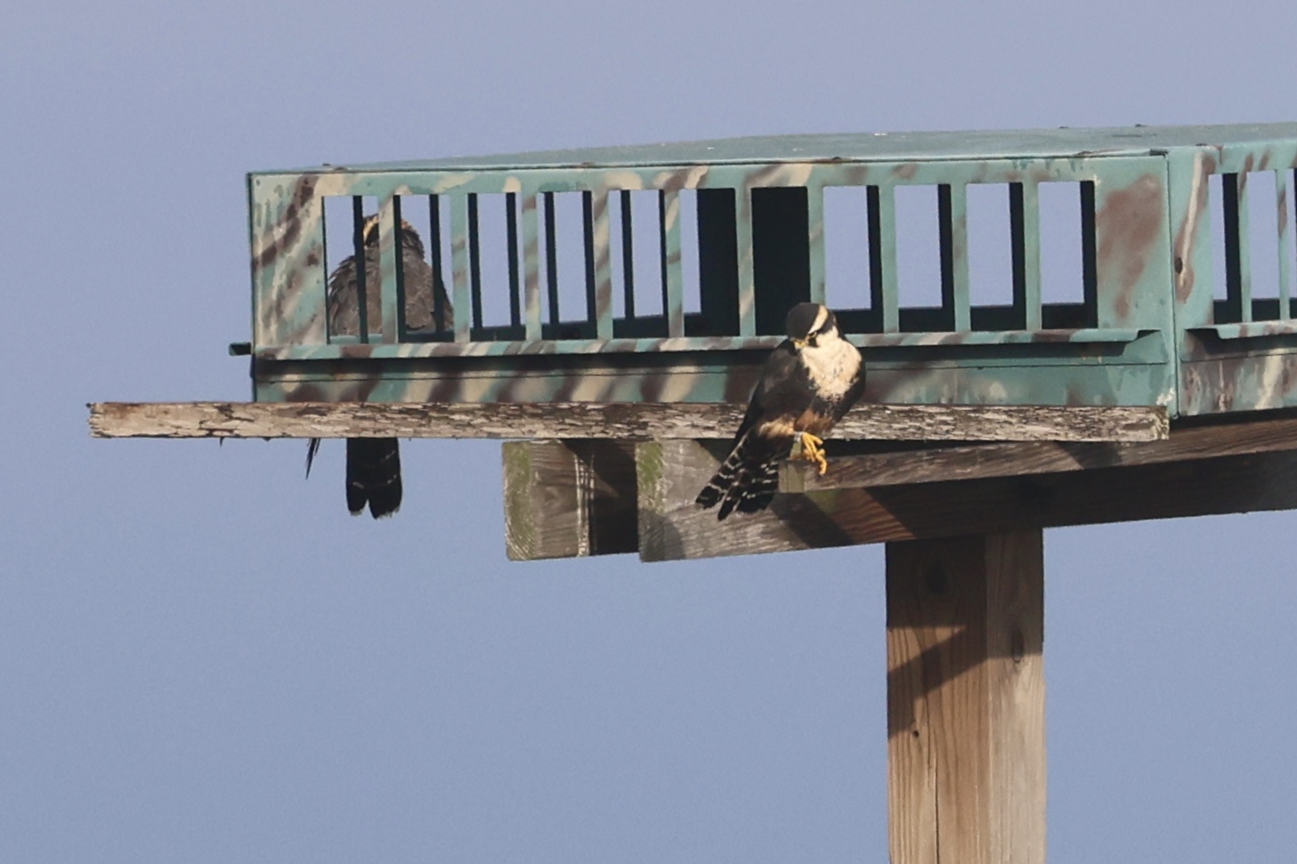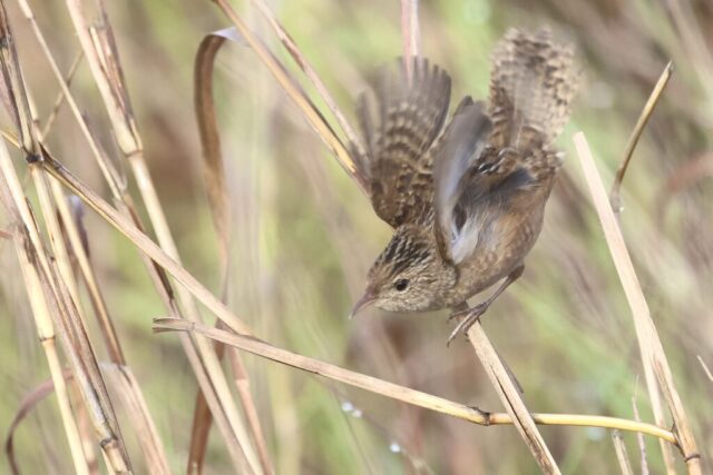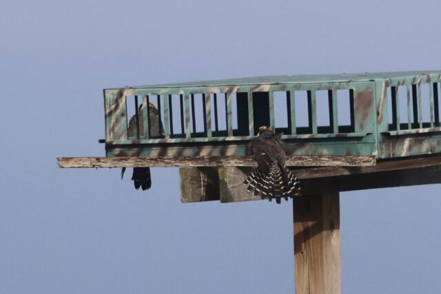 Early in the morning, we headed towards the Aplomado viewing area. As soon as we arrived, we saw the pair resting in their nest box. After a while, they finally gracefully flew off to a hunt. As I found the habitat suitable for Sedge Wren, a species that we need, I played a little bit of a Sedge Wren call and two actually showed up!