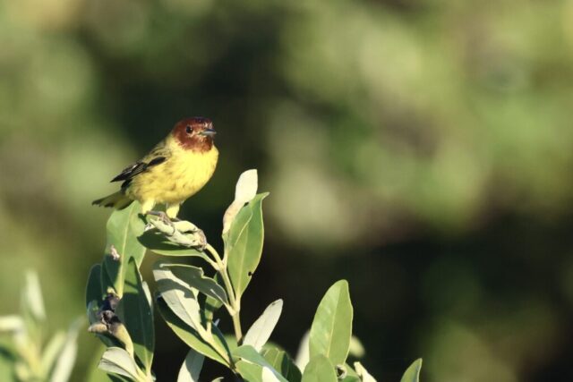 When we arrived, we didn’t see many birds, but after a while I heard a few chips from the far side of the marsh. Luckyly, we were here during low tide, and we walked straight through the marsh too where the chips were coming from. After a few minutes of searching, we were finally looking straight at two brown-headed yellow warblers perched on top of a mangrove bush right in front of us. They are the Mangrove Yellow Warblers!