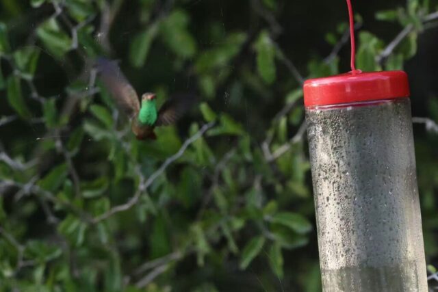 Then in the afternoon, we checked Estero Llano Grande SP World Birding Center. There, after successfully finding the famous Common Pauraque, we sat at the feeders waiting for Buff-bellied Hummingbirds while accompanied by Green Jays, Plain Chachalacas, white tipped doves and a lot of others. But eventually, the hummer only visited briefly and I only got blurry images.