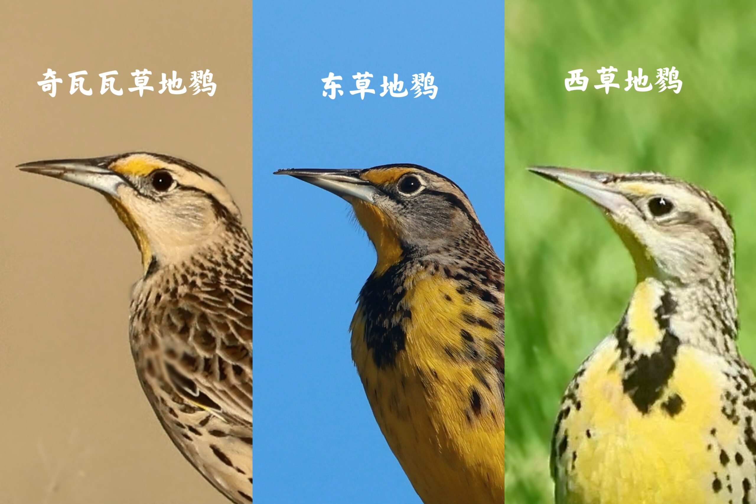 Recently, I wrote a new article in Chinese about three meadowlark species in the genus Sturnella. These yellow-bellied grassland birds are similar in appearance, but each has its own unique field marks, voice, and habitat preference.